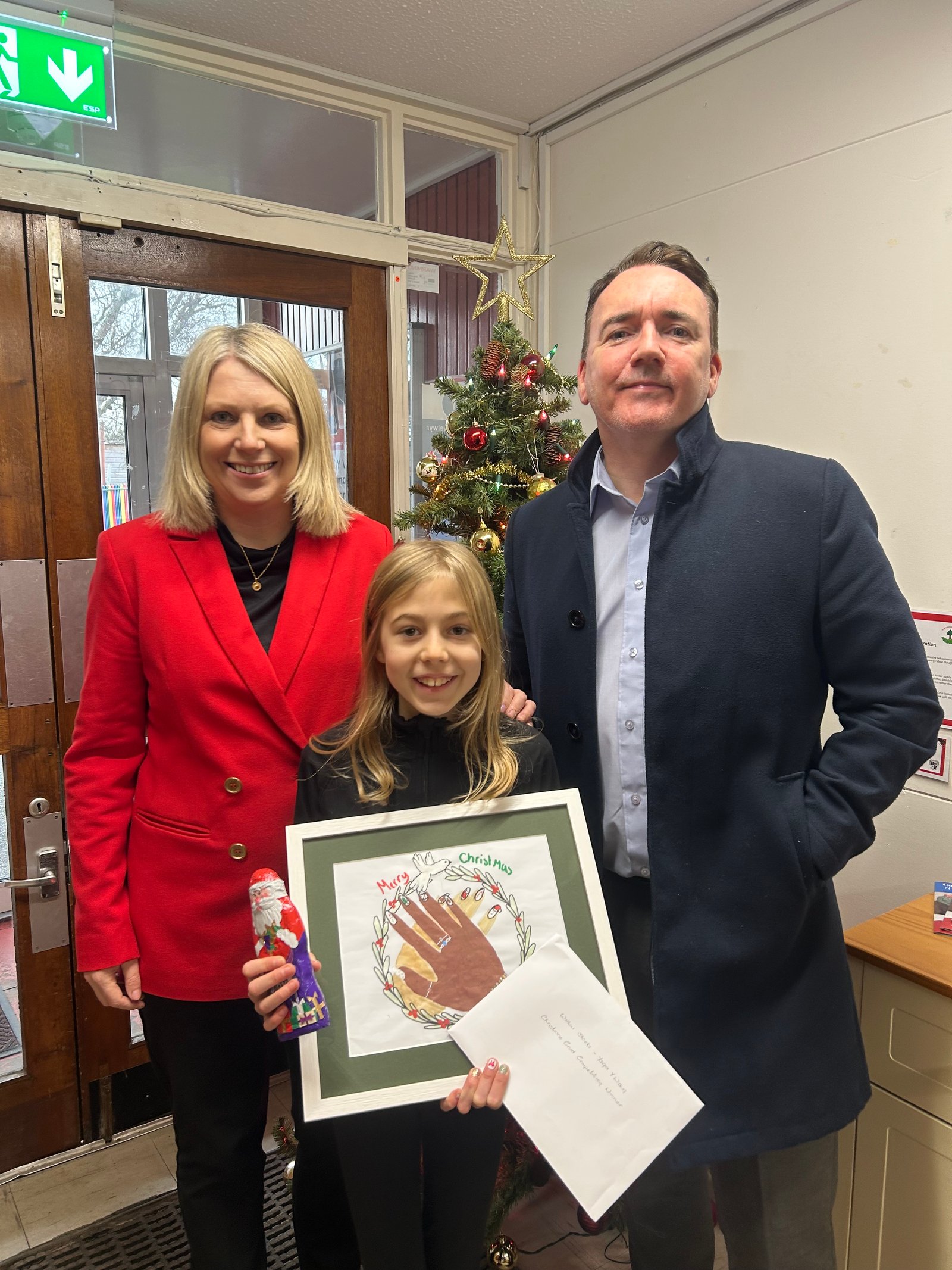 The overall winner was Willow Stocks from Class 3 at Ysgol y Waun in Gwernaffield. Her design will be used as Hannah’s official Christmas card and sent to residents, businesses and organisations across the constituency.
